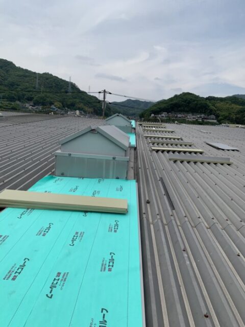 既存の水上カバーにセンチュリーボートをカバーして下葺材を施工した画像です