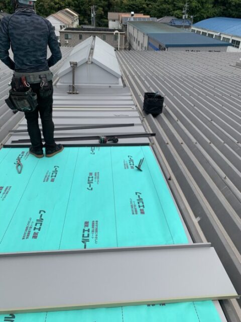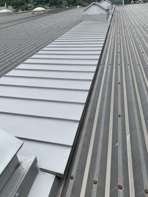 立平葺での施工です 既存の屋根は下地無しで屋根材に直にビス止めしてた為、コーキングが切れると雨漏りする状態でした。