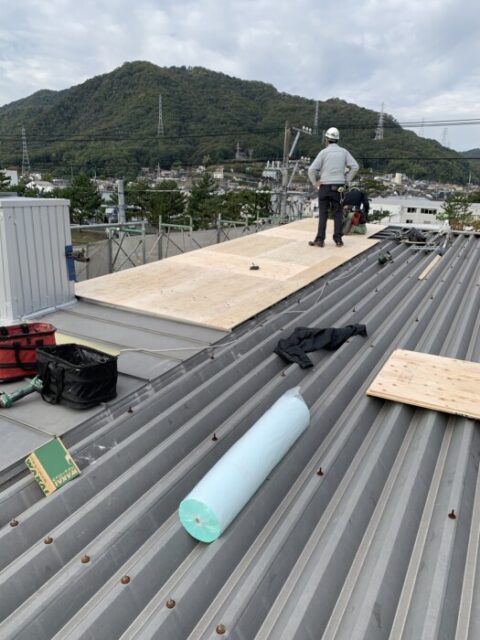 広島県広島市を拠点に、板金屋根工事、外壁工事、雨樋工事など承っている、有限会社山本板金です 自社施工による工事なので、中間マージン経費が必要ないので経済的な予算での工事が可能です 。今回も某店舗屋根の雨漏り対策工事です
