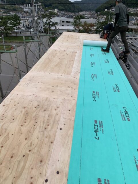 ルーフィング(下葺材)緑を施工です