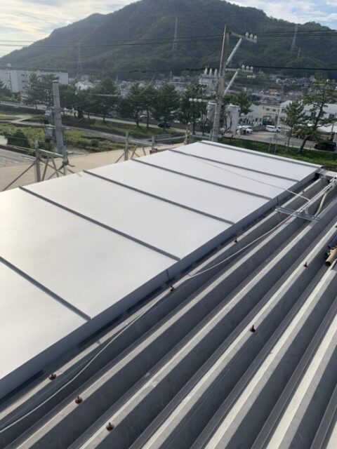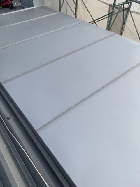 ガルバリウム鋼板を立平葺にて施工です これで、雨漏り対策工事完了しました。