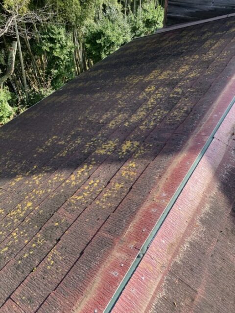 既存のカラーベストは苔も生えてボロボロです 木下地はしっかりしているのでカバー工法での施工です