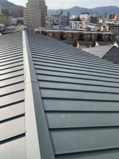 弊社は広島市に事務所を構え、中国地方にて屋根工事・雨漏り修理などを主力業務として活動しております ガルバリウム素地材での屋根工事です 既存のスレート撤去してからの施工です。 最近では、既存のスレートは撤去せずに追い張り( […]